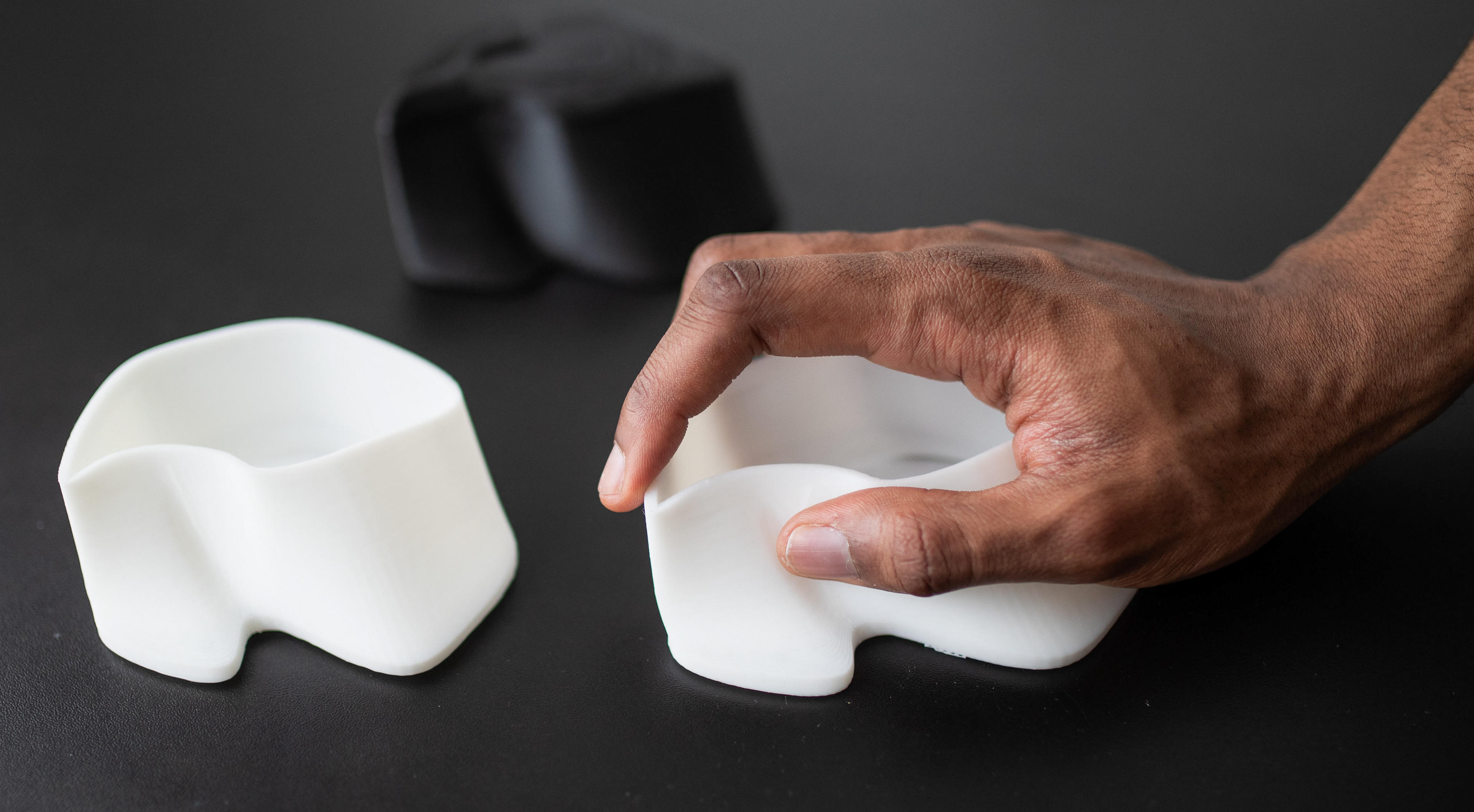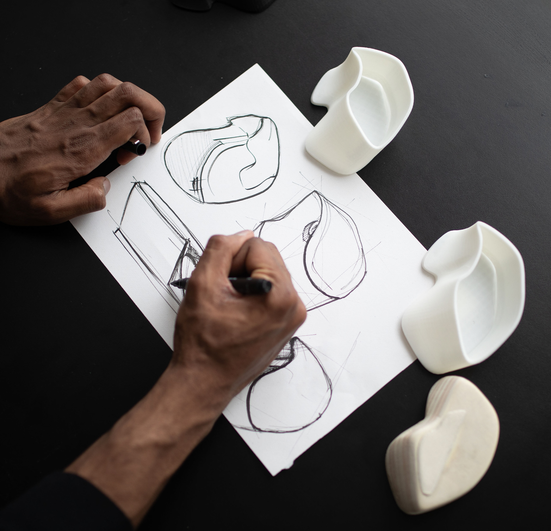 Form studies tested multiple profiles through physical models and 2D sketches, the final geometry positions the hand with a natural pronation angle, aligning the forearm more directly with the desk surface compared to flat mice.