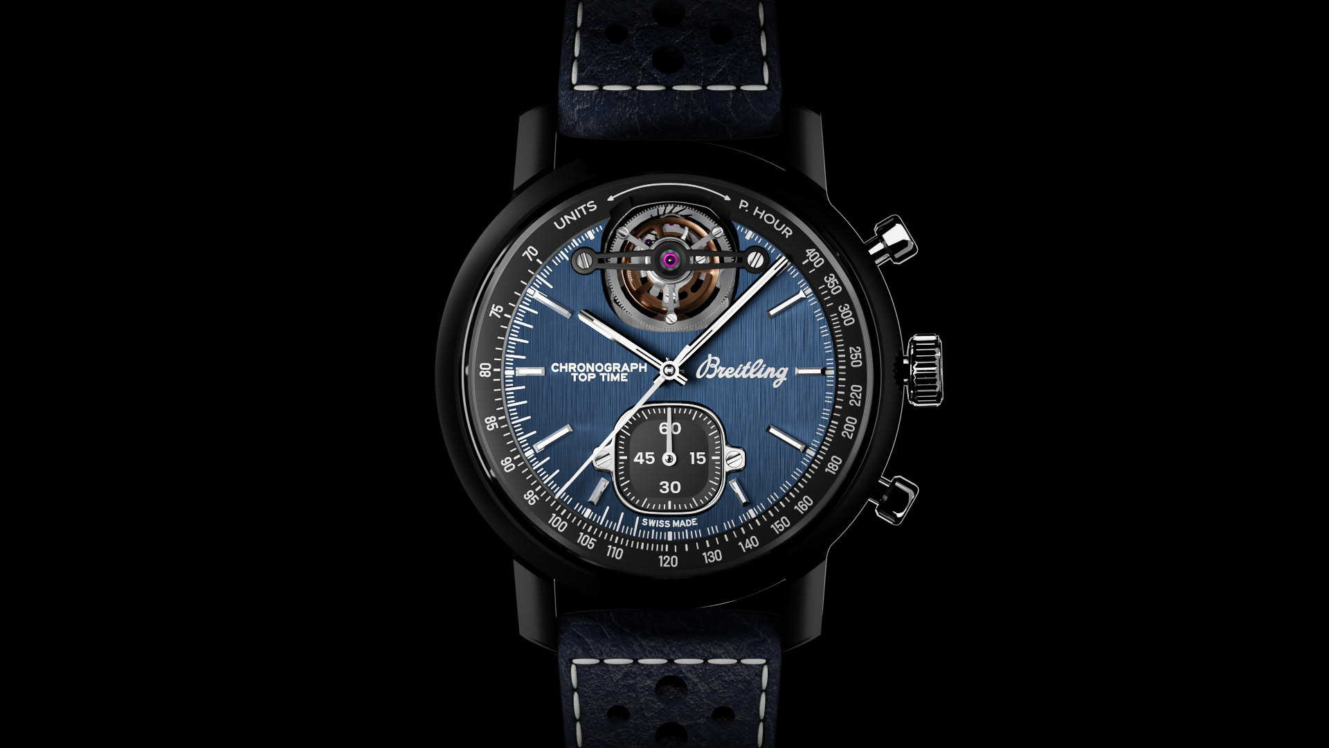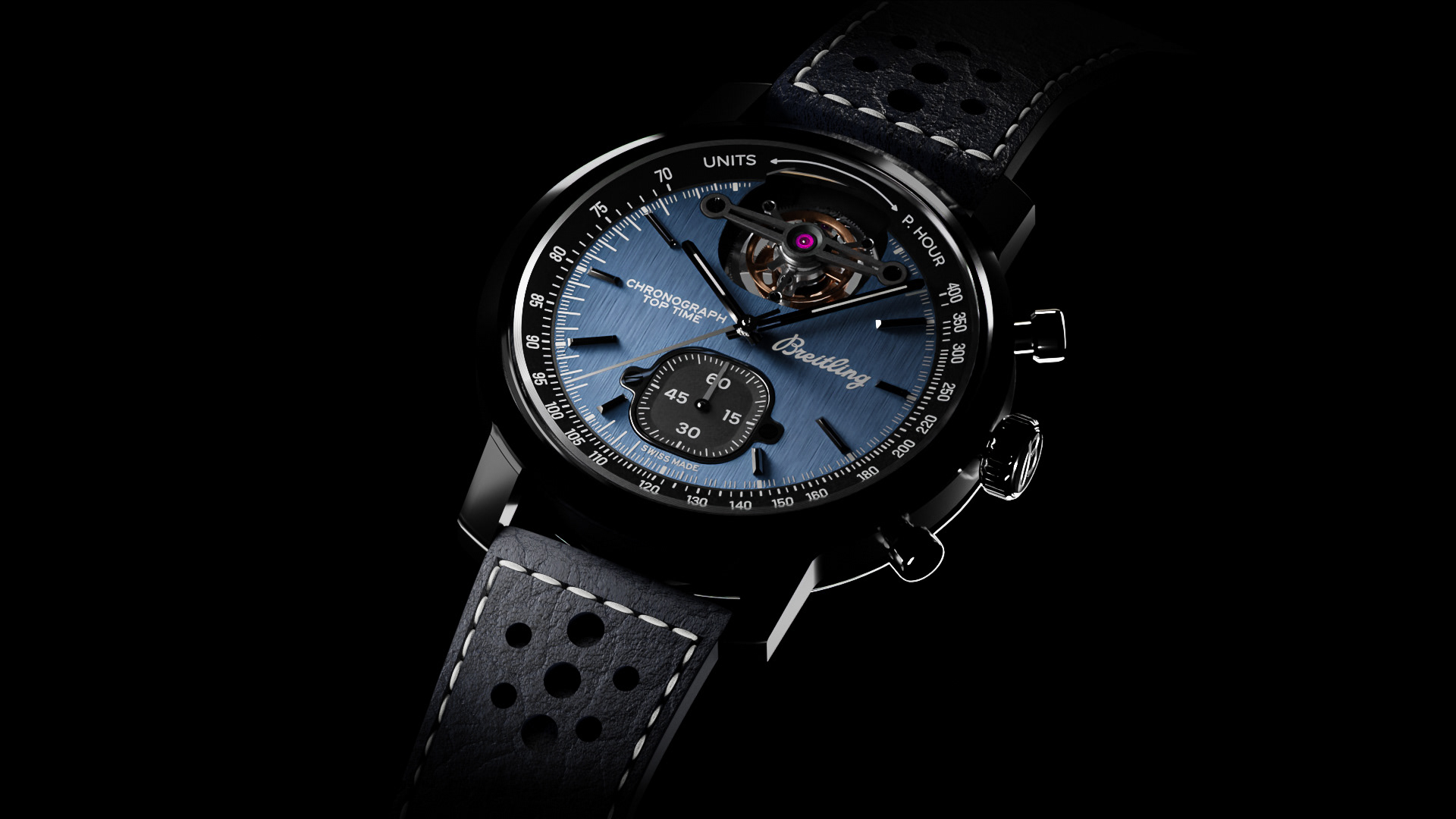 This project involved creating a 3D model of the Breitling Top Time Shelby watch.